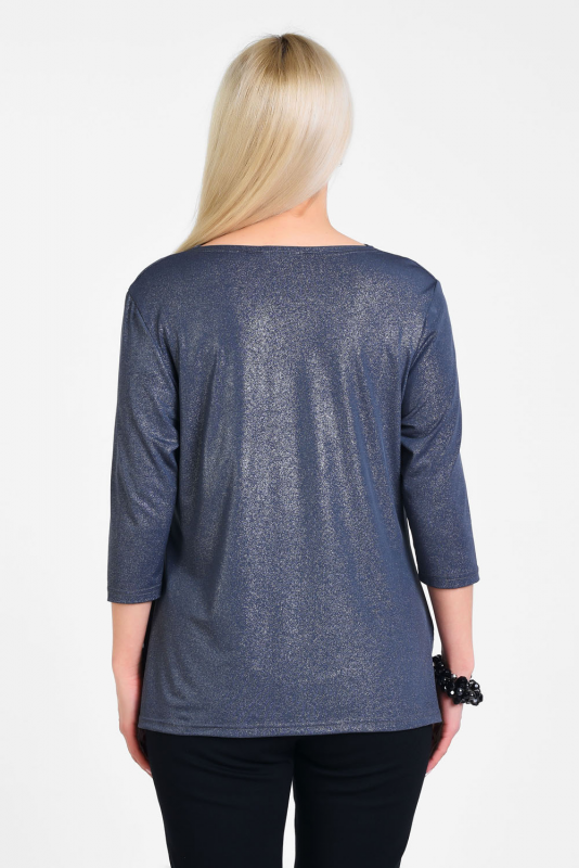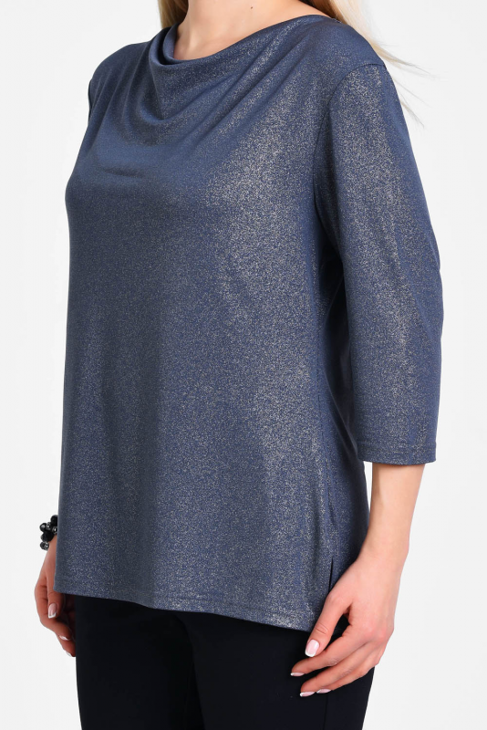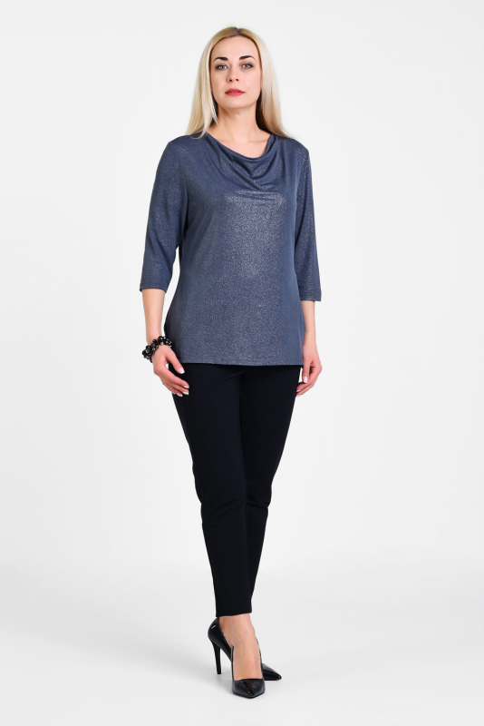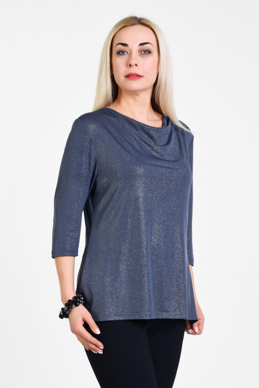 Нарядная блузка для торжественных и праздничных случаев из мерцающего трикотажа, узким рукавом 3/4, подчеркивающим линию запястья. Лаконичная элегантная модель визуально подтягивает фигуру, делает ее стройнее, воротник-каскад – единственная «игривая» деталь блузы, приоткрывает ключицы, подчеркивает линию шеи.