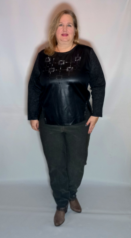 Тепленький и оригинальный блузон выполнен из сочетаний трикотажа по д кожу ( средней плотности, умерено эластичный, гладкий с наружи, внутри как обычный трикотаж) и ангоры меланж( мягонькая, эластичная, не рыхлая).