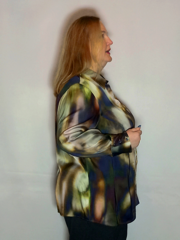 Элегантная, удлиненная модель свободного кроя. Струящаяся, дышащая, легкая в уходе ткань.