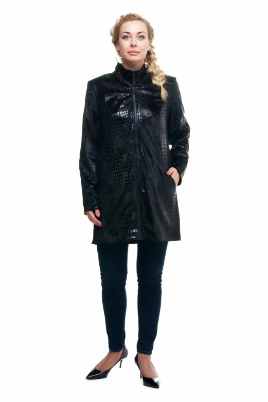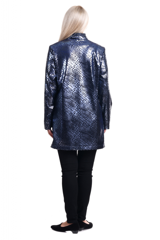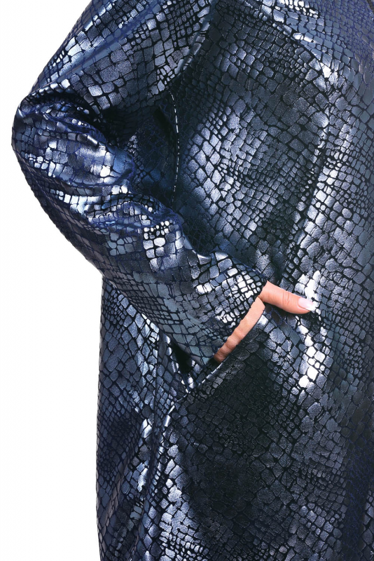 Эффектная стильная удлинённая куртка из прочной ткани с рельефным мерцающим принтом, имитирующим кожу рептилий.