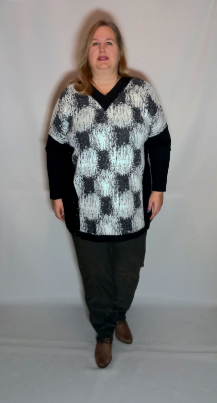 Стильная туника выполнена из трикотажного полотна с высоким содержанием вискозы и трикотажа "альпака".