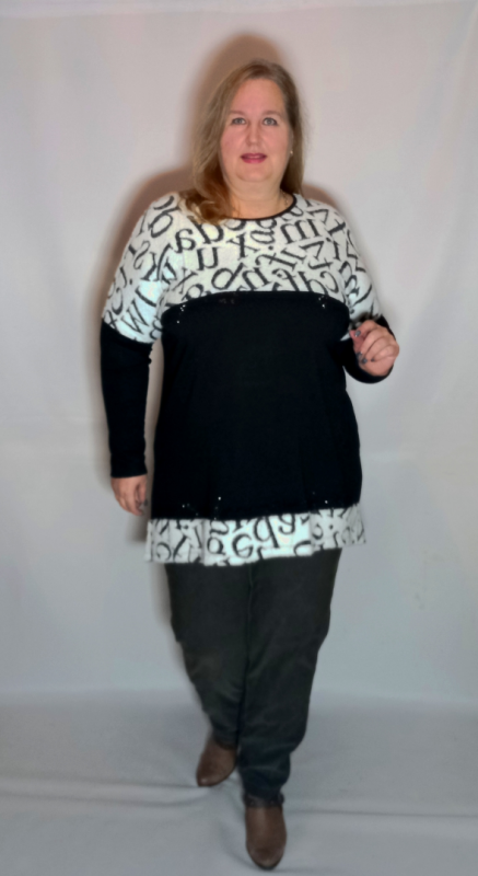 Полочка сложнокроенная: кокетка и нижняя планка из трикотажа альпака, декор термостразами