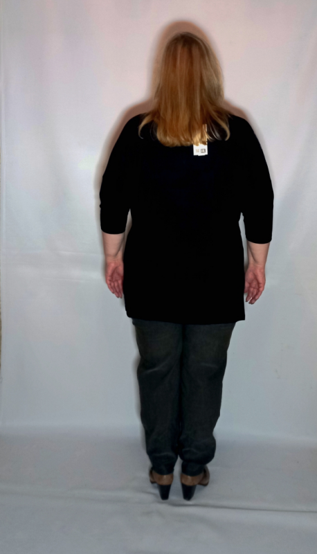 Спинка без дополнительных швов и деталей, длиннее полочки на 4 см.