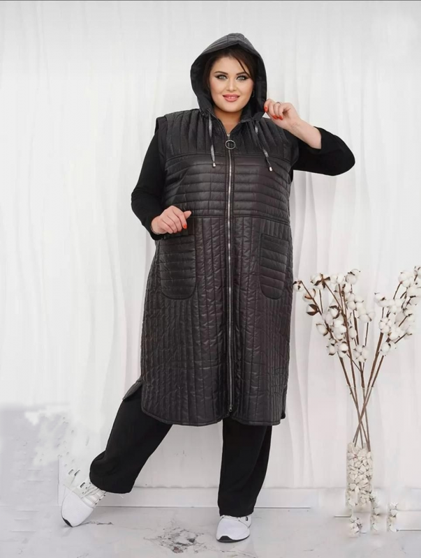 Стильный, удлиненный жилет выполнен из курточной стежки, на подкладе. Стежка красивая, шуршит мало.